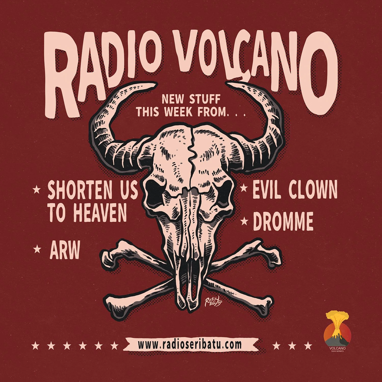 VOLCANO’s art is by the skull enthusiast @rickybilly50. Download the posters in full resolution at – www.radioseribatu.com