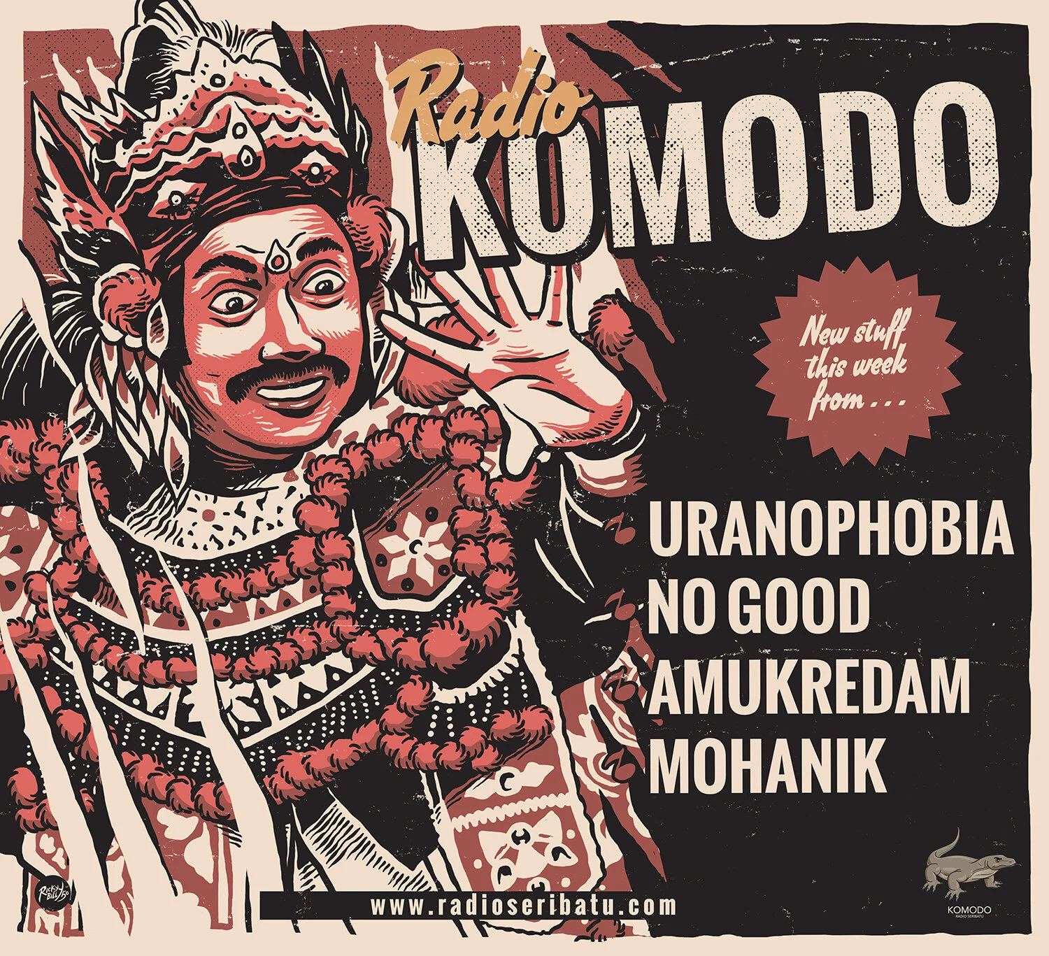 Poster art is by Bali’s @rickybilly50 he serves 50% Pop Surrealism, Lowbrow and Pulps! Download KOMODO’s posters each week right here on our website…
