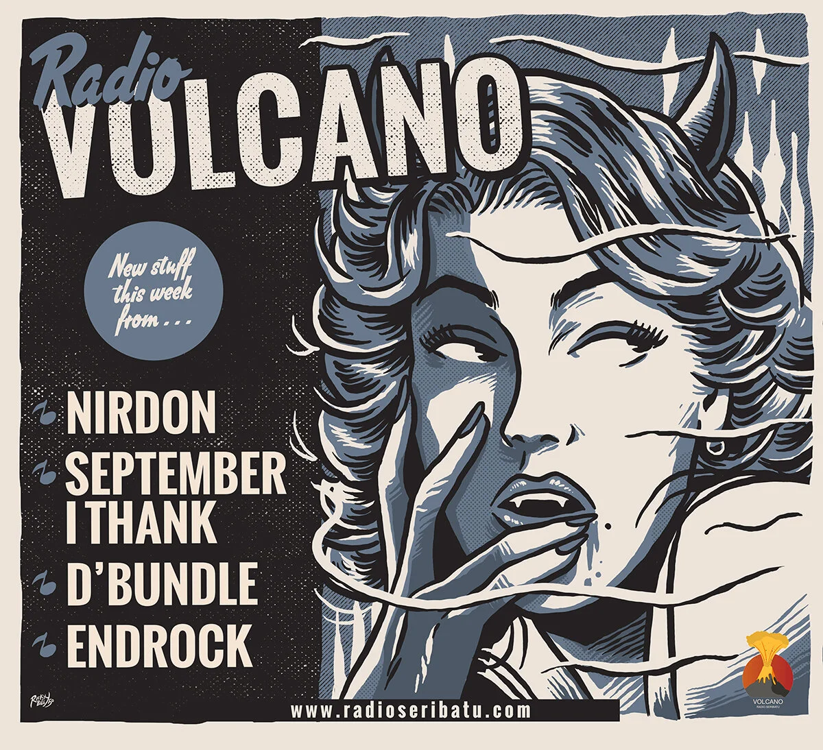 Digi-art magician @rickybilly50 each week delivers VOLCANO’s amazing poster art. Need more clouds? – he’s the guy – THE ninja of Balinese Pop Surrealism, Lowbrow & Pulps. Also don’t forget to download the posters in full resolution at our website – www.radioseribatu.com they are on to the “What’s New” page.